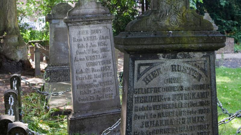 en één van de oudste van Nederland is. De kerk is inmiddels verdwenen, maar de funderingsresten zijn nog steeds zichtbaar tussen de graven.