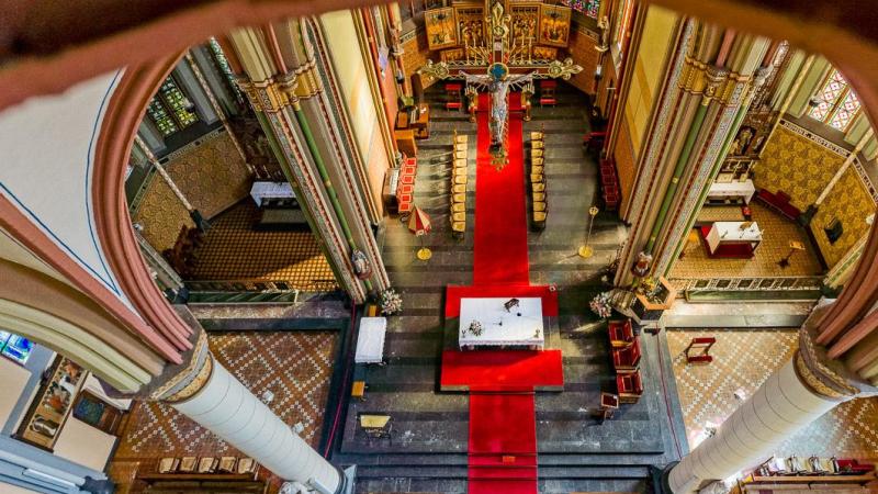 vanwege het succes van de textiel- en metaalindustrie, een explosieve groei doormaakte. Als door een wonder heeft deze kerk het zware bombardement van 1944 overleefd. De kerk werd wel getroffen, maar de bom ging gelukkig niet af!